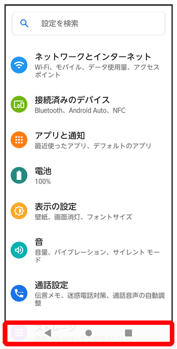 画面下部のアイコンが表示される領域を「ナビゲーションバー」と呼びます。アイコンをタップ/ドラッグ/フリックして操作できます。