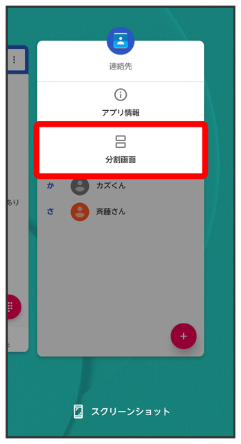 本機の表示画面を分割し、2つのアプリを表示、操作できます。