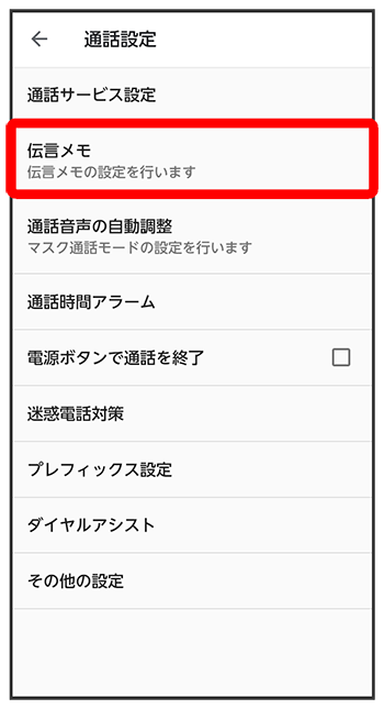 - 電話着信時に、設定した伝言メモの応答時間が経過する前に着信が切断されてしまう場合は、転送電話サービスまたは留守番電話サービスの利用を停止してください。転送電話サービスまたは留守番電話サービスについて詳しくは、「転送電話サービスを利用する」、「留守番電話サービスを利用する」を参照してください。
