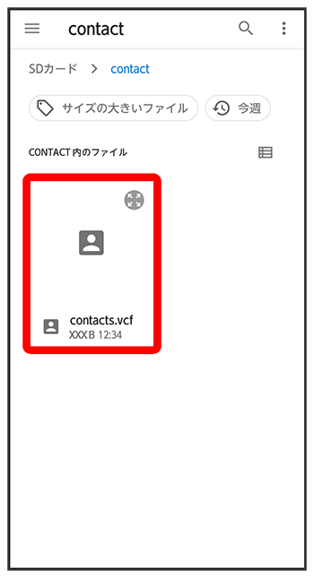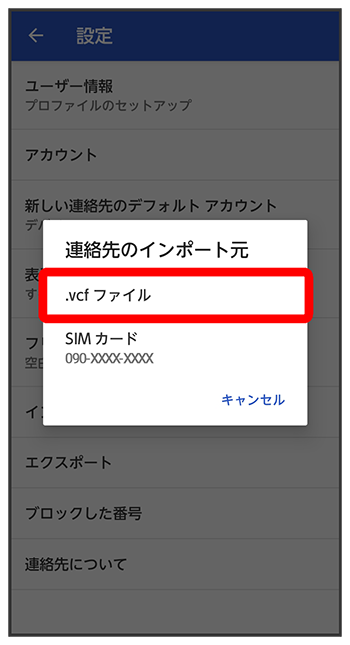 SDカードから連絡先データを読み込む