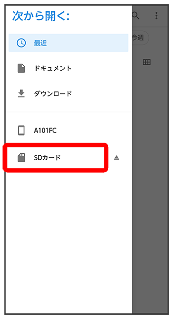 読み込むファイルの保存先をタップ
