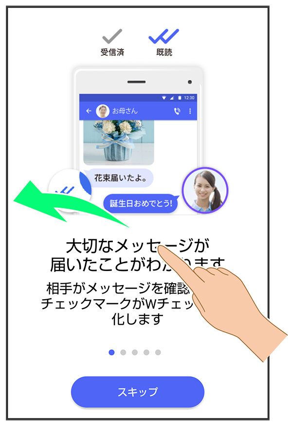 - をタップした場合は、SMS/S!メールのみの利用となり、+メッセージは利用できません。