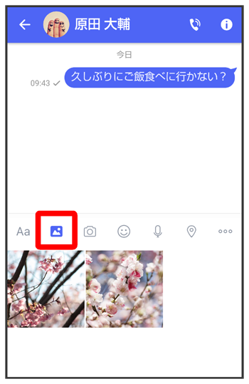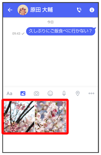 をタップすると画像/動画が添付されたメッセージが送信されます。