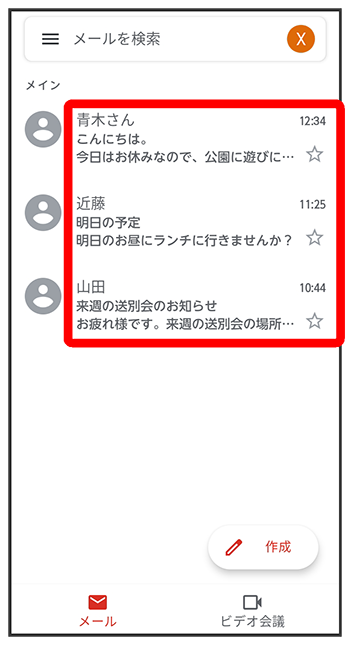 メール一覧画面が表示されます。