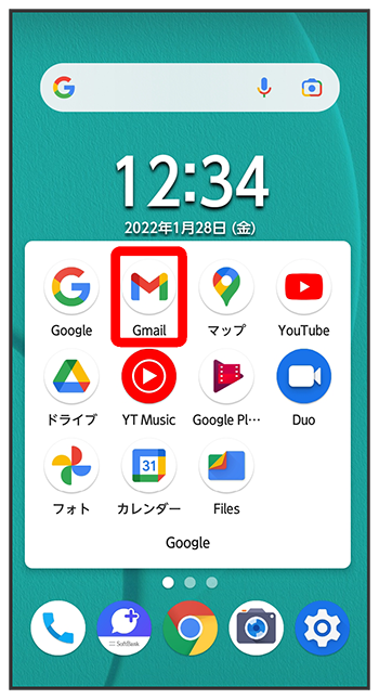 メール一覧画面で、画面を下にフリック