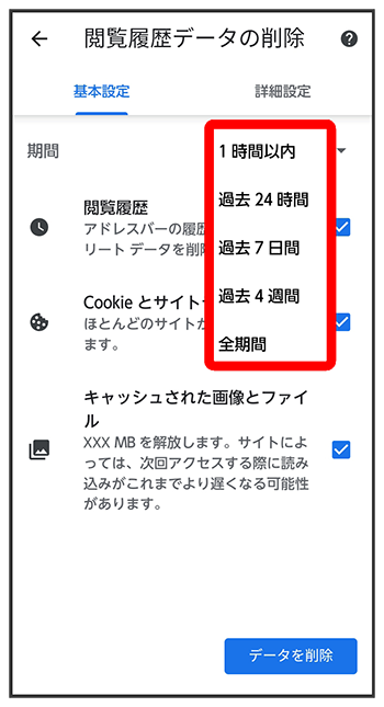 削除する情報の種類をタップ
