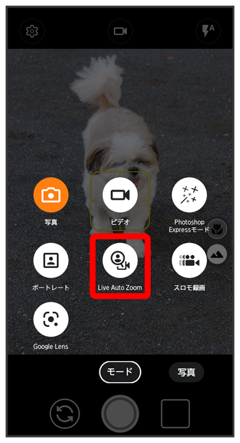 Live Auto Zoom撮影画面が表示されます。