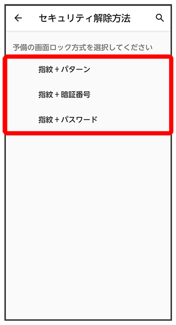- 指紋認証ができないときの予備のセキュリティ解除方法になります。