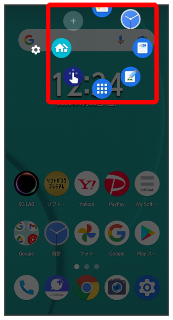 スライドインランチャーのショートカットが表示されます。