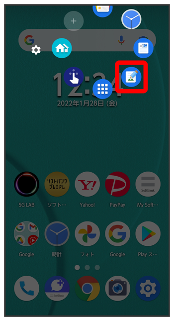 表示されている画面のスクリーンショットを撮ったあと、画像編集画面が表示されます。