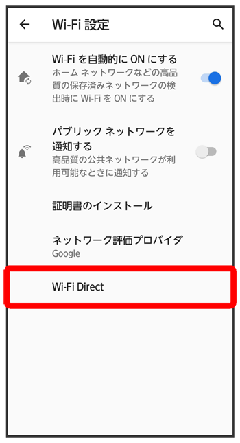 Wi-Fi Direct設定画面が表示されます。