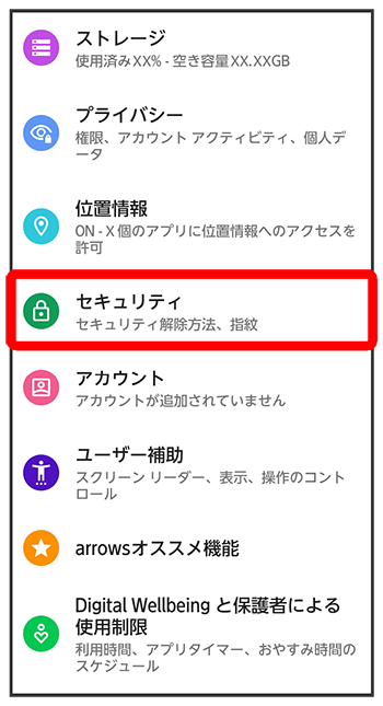 - 変更前のセキュリティ解除方法がまたは以外のときは、をタップしたあとロックを解除する操作が必要です。