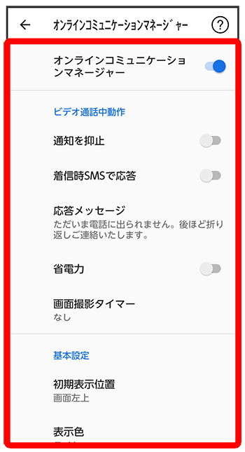 快適にオンラインコミュニケーションを行うための各種設定ができます。設定できる項目は次のとおりです。