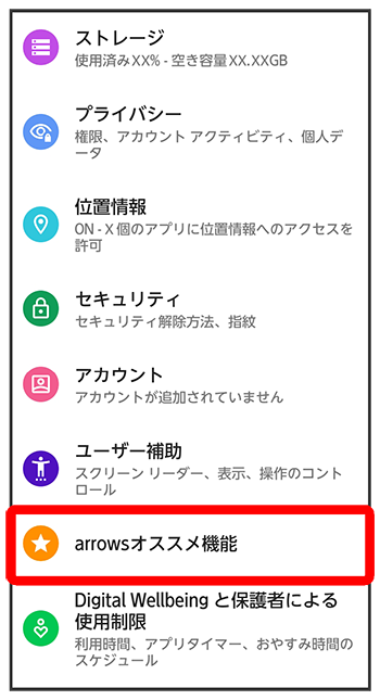 arrowsオススメ機能画面が表示されます。
