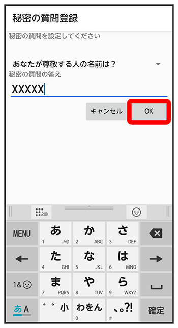 質問内容をタップ秘密の質問の答え入力欄をタップ答えを入力