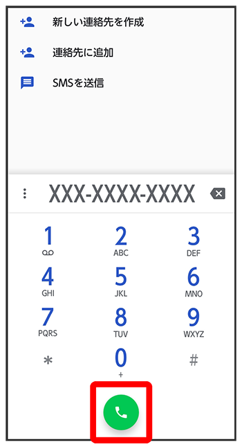 ダイヤルキーをタップして相手の電話番号を入力
