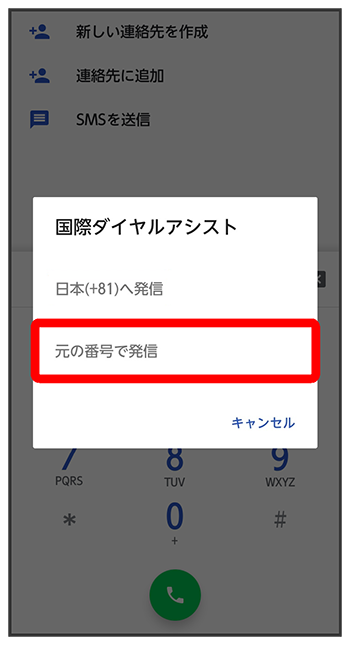電話番号発信画面が表示されます。