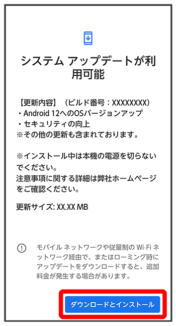 - 「インストールを一時停止しました」と表示された場合は画面内容を確認し、インストールを続けるときはをタップしてください。