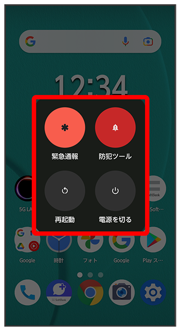 電源キーをすばやく5回以上連続で押すと、最寄りの緊急通報番号へ電話がかかります。詳しくは、「緊急情報と緊急通報」を参照してください。