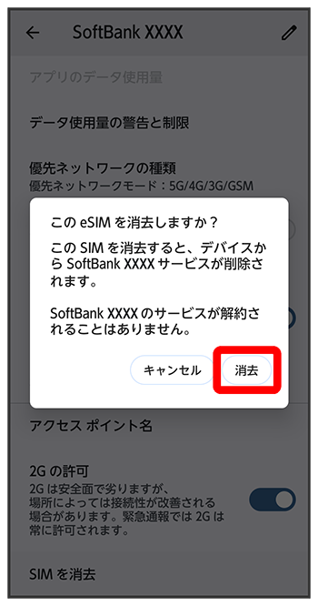 eSIMを消去した場合でも、ご契約が解除されたわけではありません。
