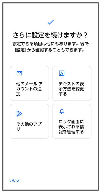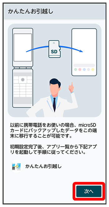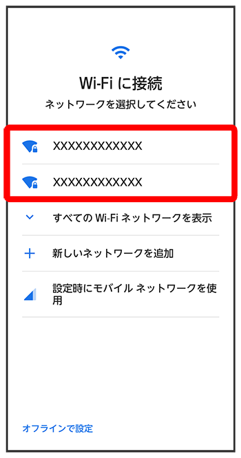 - SIMカードのご利用中にWi-Fiの設定を行わないときは、/をタップします。以降は、画面の指示に従って操作してください。