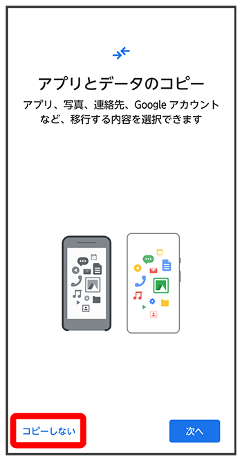 - をタップすると、ほかの端末などからデータをコピーできます。画面の指示に従って操作してください。