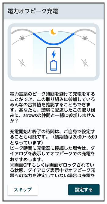 - 電力オフピーク充電を設定しないときは、をタップします。