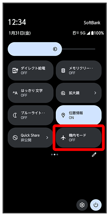 - 機内モードを設定しているときに、同様の操作を再度行うと機内モードが解除されます。