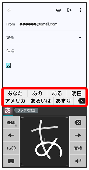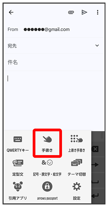 をタップすると、テンキーキーボード/QWERTYキーボードの上から手書き入力することができます。
