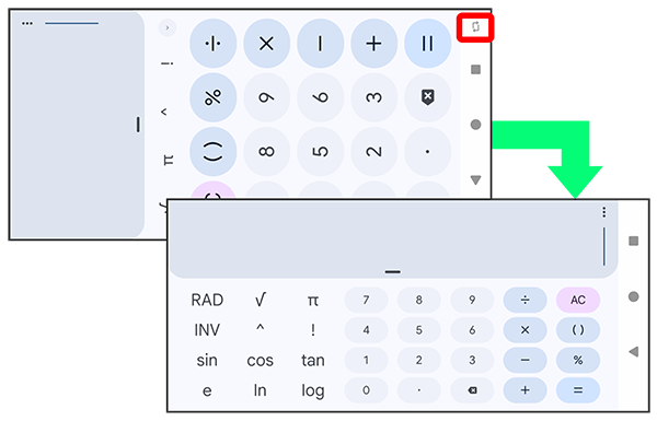 をタップすると、表示画面が横表示に切り替わります。縦表示に切り替えるときは、本機を縦向きに回転させて