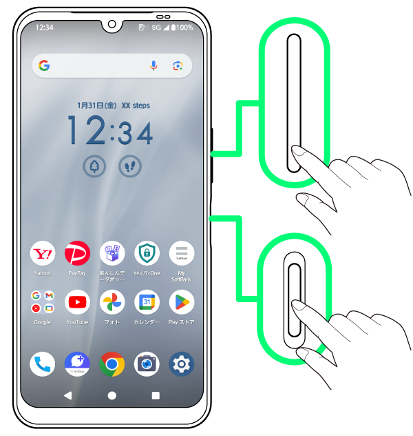 電源キーと音量小キーを同時に押すと、表示されている画面のスクリーンショットを撮ることができます。