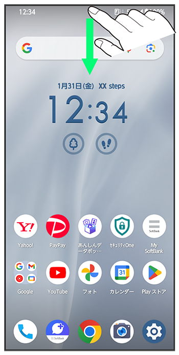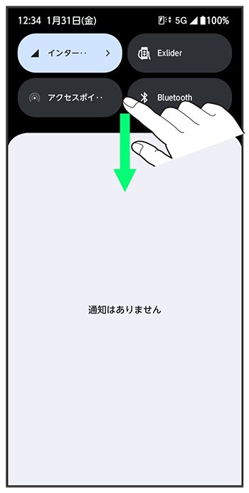 クイック設定パネルを上にフリック通知パネルを上にフリック
