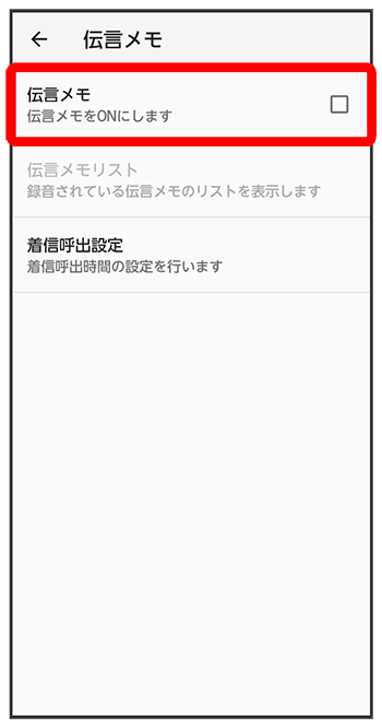 - 電話着信時に、設定した伝言メモの応答時間が経過する前に着信が切断されてしまう場合は、転送電話サービスまたは留守番電話サービスの利用を停止してください。転送電話サービスまたは留守番電話サービスについて詳しくは、「転送電話サービスを利用する」、「留守番電話サービスを利用する」を参照してください。