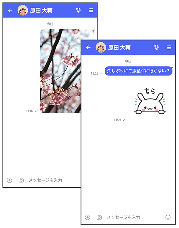 写真や動画はもちろん、スタンプや現在地の情報を送受信することもできます。