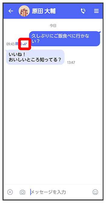 (既読)に変わり、メッセージの既読を相手に通知します。受信したメッセージを確認しても