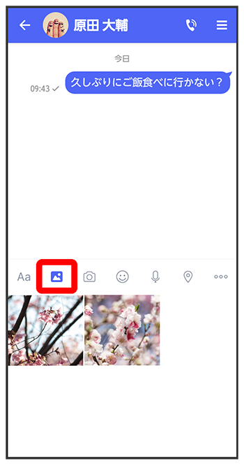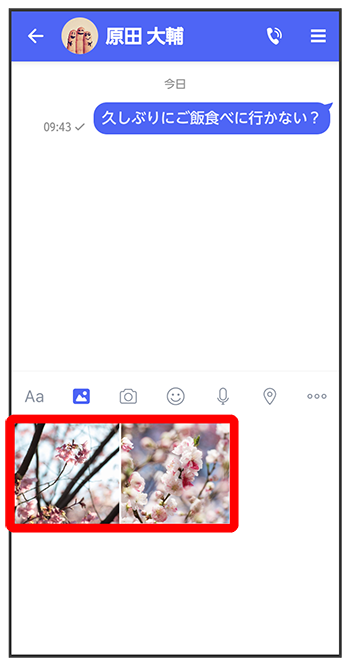 をタップすると画像/動画が添付されたメッセージが送信されます。