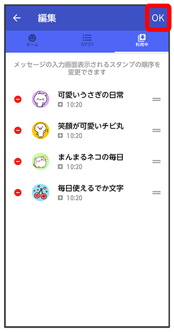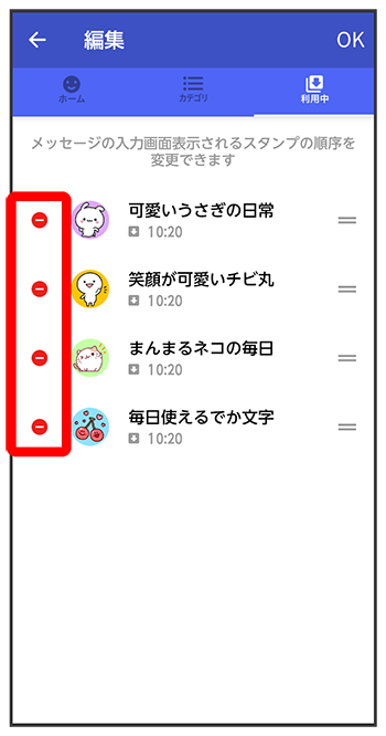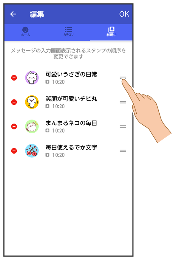 をドラッグしてスタンプの順番を変更できます。