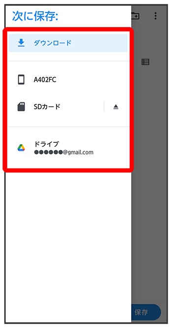 - 端末内へ保存したい場合は機種名/ダウンロードを選択します。