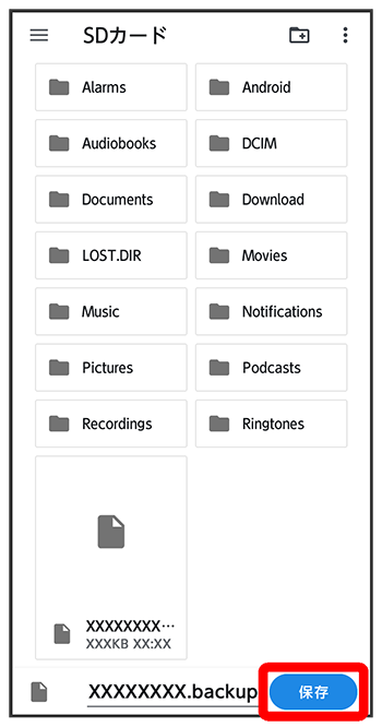 - バックアップしたデータのファイル名は「PlusMessage_」から始まり、拡張子は「.backup」になります。たとえば「PlusMessage_XXXXXXXX.backup」となります。