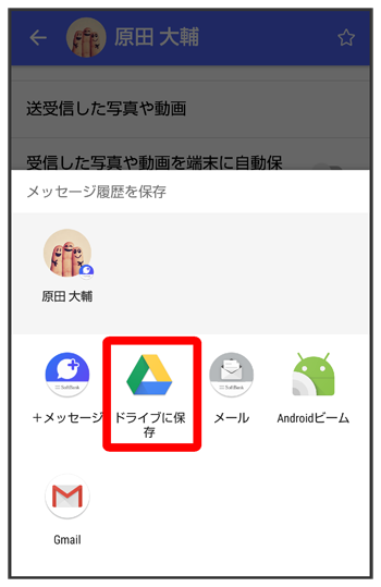 メッセージデータをGoogle ドライブなどにバックアップする