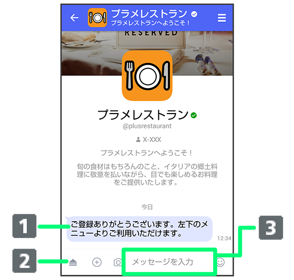 公式アカウントから、テキスト形式でお知らせを受信できます。 - メニューを表示