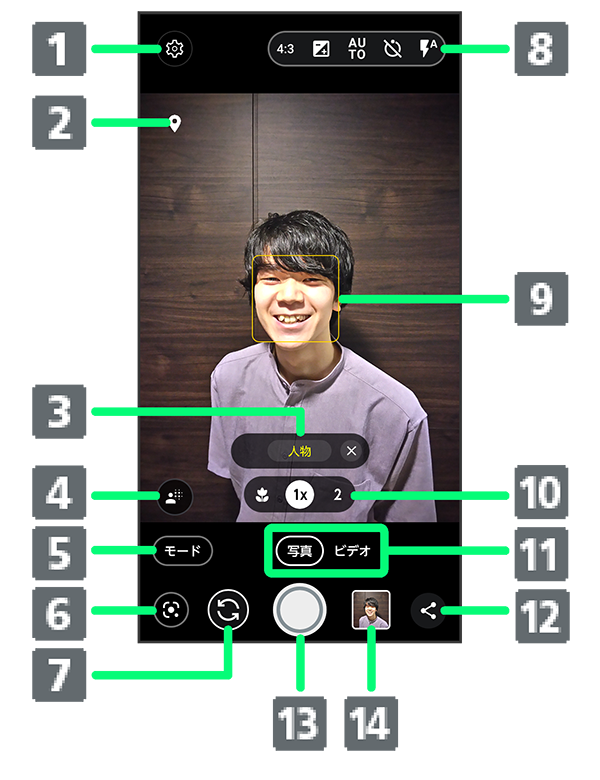 写真撮影画面の見かた