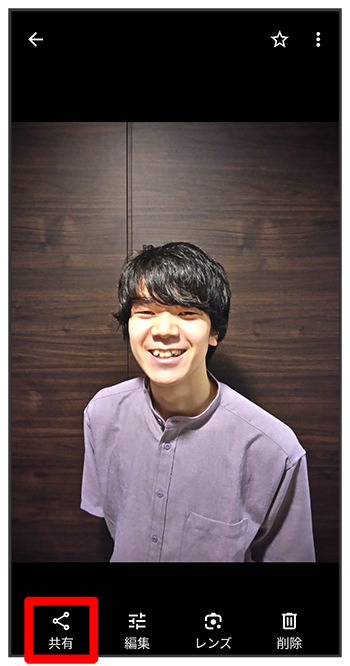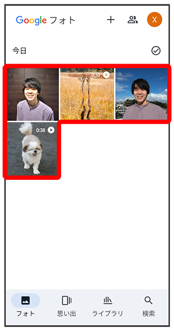 フォト画面で写真/動画をタップ画面の指示に従って操作