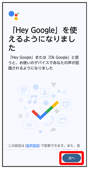 Hey Googleの利用についての説明を確認して