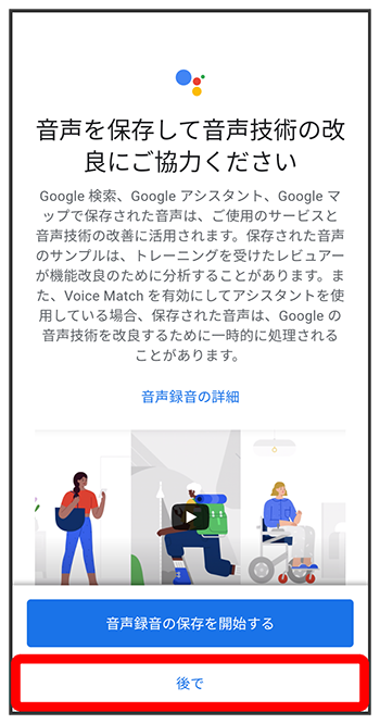 - 音声録音をGoogle アカウントに保存するときは、をタップします。