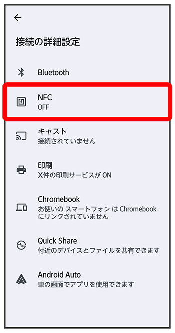 NFC画面が表示されます。