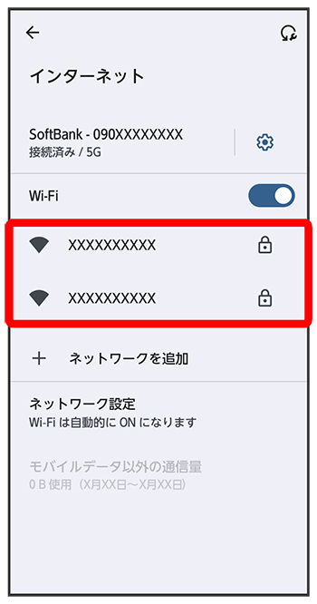 Wi-Fi設定画面で画面の指示に従って操作Wi-Fiを使用したデータ使用量を確認する