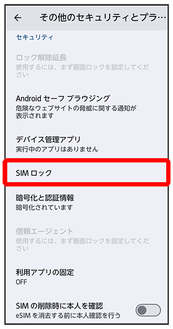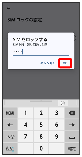 PINコードを有効にすることで、SIMカードを本機に取り付けた状態/eSIMが有効な状態で電源を入れたとき、PINコードを入力する画面を表示するように設定できます。