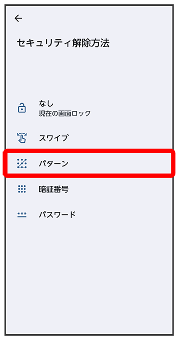 - 変更前のセキュリティ解除方法がまたは以外のときは、をタップしたあとロックを解除する操作が必要です。