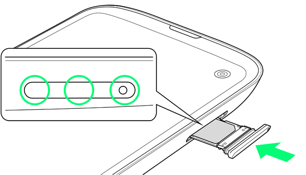 - SIMカードトレイの向きに注意してください。誤った向きで差し込んだ場合、SIMカードが落下したり、本機の破損・故障の原因となることがあります。